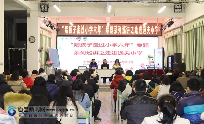 ????????百色新聞網(wǎng)右江區(qū)1月12日訊(通訊員 韋艷紅 黃晟嘉)教育的發(fā)展離不開學(xué)校、家庭、社會的共同努力。為了構(gòu)建良好的教育環(huán)境,1月7日,廣西益眾文化傳媒有限公司、百色市逸夫小學(xué)聯(lián)合舉辦“陪孩子走過小學(xué)六年”家庭教育進校園巡講活動。