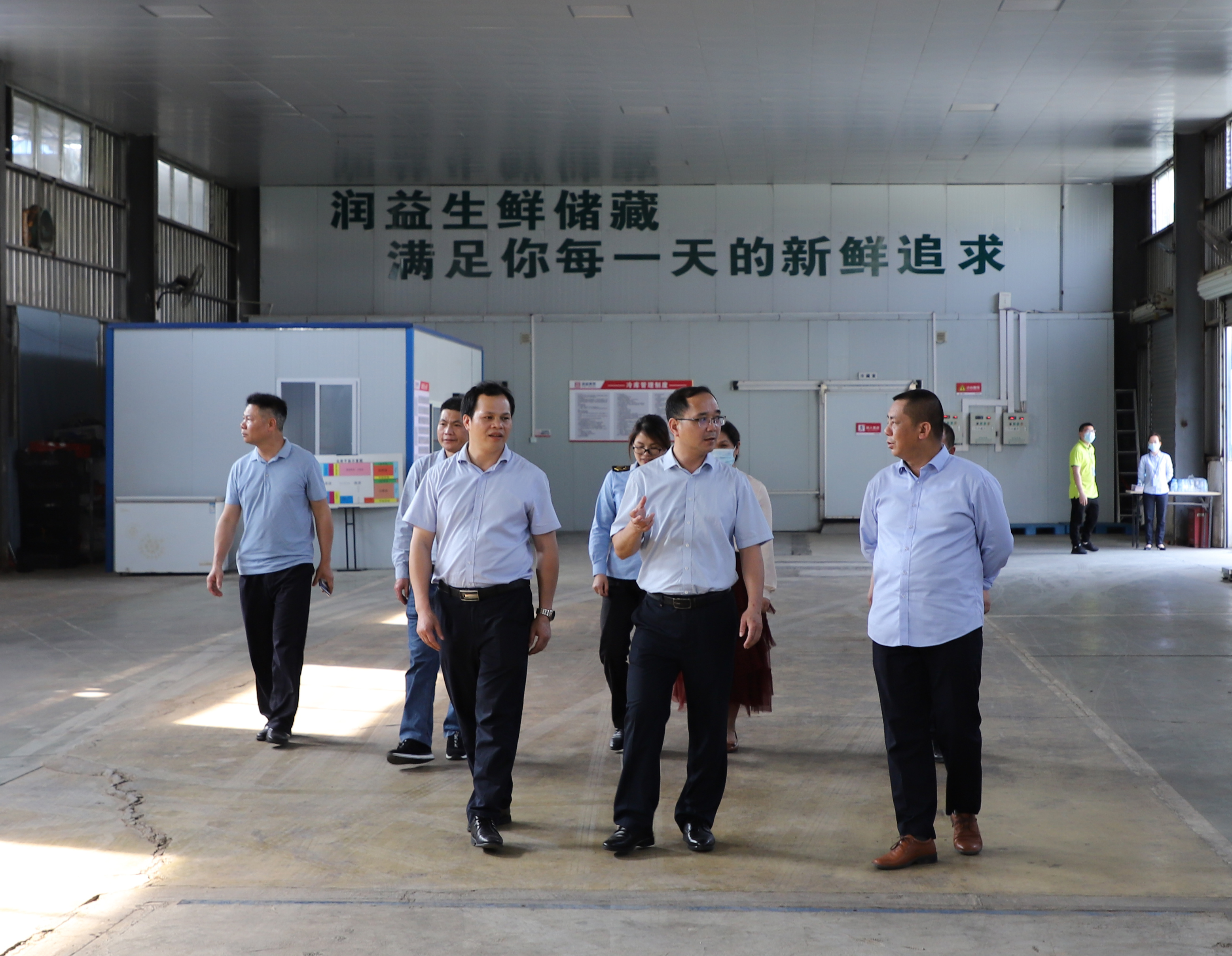 ????????3月19日,百色市市場監(jiān)督管理局總工程師黃承忠率隊(duì)到潤益商貿(mào)公司開展春季食品安全調(diào)研檢查工作,右江區(qū)市場監(jiān)管局、益眾公司等有關(guān)負(fù)責(zé)同志陪同調(diào)研。