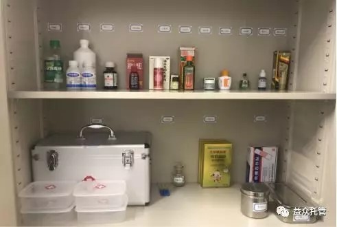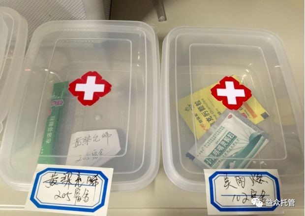 校區(qū)醫(yī)療角還專(zhuān)門(mén)設(shè)立了放置生病學(xué)生從家里帶來(lái)學(xué)校服用的藥品,每位學(xué)生按標(biāo)簽標(biāo)好,密封放置藥盒中,確保藥品不混淆、不受潮,按家長(zhǎng)要求照顧孩子按時(shí)按量服藥。
