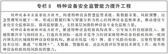 強(qiáng)化特種設(shè)備安全風(fēng)險(xiǎn)監(jiān)控體系建設(shè)。優(yōu)化特種設(shè)備監(jiān)管信息化建設(shè)基礎(chǔ)和應(yīng)用環(huán)境,推動(dòng)國(guó)家與地方監(jiān)管數(shù)據(jù)互聯(lián)互通,增強(qiáng)數(shù)據(jù)分析和信用管理功能,完善全國(guó)統(tǒng)一的特種設(shè)備信息公示查詢系統(tǒng)。加強(qiáng)特種設(shè)備風(fēng)險(xiǎn)預(yù)警與應(yīng)急處置能力建設(shè),提高安全風(fēng)險(xiǎn)識(shí)別和防控能力。推動(dòng)特種設(shè)備使用單位開(kāi)展風(fēng)險(xiǎn)分級(jí)管控,從源頭上系統(tǒng)辨識(shí)風(fēng)險(xiǎn)、防控風(fēng)險(xiǎn)。完善生產(chǎn)單位、檢驗(yàn)檢測(cè)機(jī)構(gòu)和人員資格信息等特種設(shè)備基礎(chǔ)數(shù)據(jù)庫(kù)。以電梯、氣瓶和移動(dòng)式壓力容器、叉車等為重點(diǎn),建立健全特種設(shè)備質(zhì)量安全管理追溯體系。推動(dòng)特種設(shè)備生產(chǎn)企業(yè)加大研發(fā)投入,建立科學(xué)嚴(yán)密、反應(yīng)及時(shí)的風(fēng)險(xiǎn)防范系統(tǒng)。完善鍋爐安全、節(jié)能、環(huán)保三位一體的監(jiān)管體系,以實(shí)現(xiàn)碳達(dá)峰碳中和目標(biāo)為導(dǎo)向,進(jìn)一步提升鍋爐節(jié)能環(huán)保水平。
