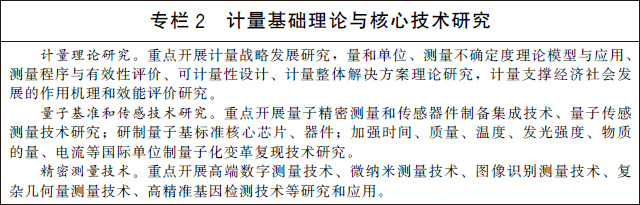 (四)加強計量基礎和前沿技術研究。加強計量學基礎理論和核心技術的原始創(chuàng)新。實施“量子度量衡”計劃,重點研究基于量子效應和物理常數(shù)的量子計量技術及計量基準、標準裝置小型化技術,突破量子傳感和芯片級計量標準技術,形成核心器件研制能力。研究人工智能、生物技術、新材料、新能源、先進制造和新一代信息技術等領域精密測量技術。開展測量不確定度、測量程序與有效性評價、計量作用機理和效能評價等理論研究。