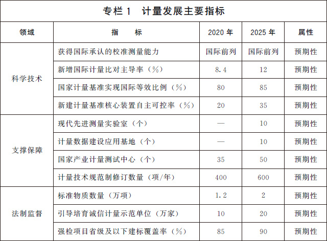 (三)發(fā)展目標。到2025年,國家現(xiàn)代先進測量體系初步建立,計量科技創(chuàng)新力、影響力進入世界前列,部分領域達到國際領先水平。計量在經濟社會各領域的地位和作用日益凸顯,協(xié)同推進計量工作的體制機制進一步完善。