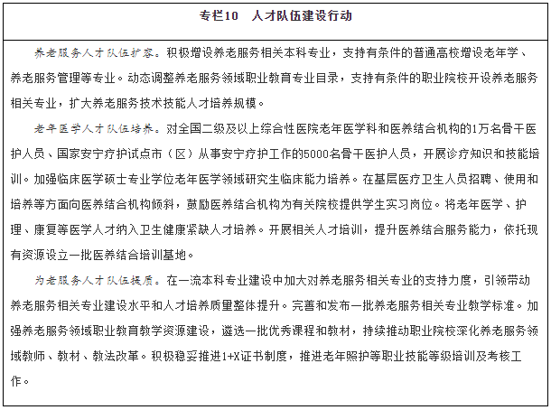 拓寬人才培養(yǎng)途徑。優(yōu)化養(yǎng)老服務(wù)專業(yè)設(shè)置,結(jié)合行業(yè)發(fā)展新業(yè)態(tài),動(dòng)態(tài)調(diào)整增設(shè)相關(guān)專業(yè)并完善教學(xué)標(biāo)準(zhǔn)體系,引導(dǎo)普通高校、職業(yè)院校、開放大學(xué)、成人高校等加大養(yǎng)老服務(wù)人才培養(yǎng)力度。積極穩(wěn)妥推進(jìn)1+X證書(“學(xué)歷證書+若干職業(yè)技能等級(jí)證書”)制度。大力推進(jìn)養(yǎng)老領(lǐng)域產(chǎn)教融合,培育一批產(chǎn)教融合型養(yǎng)老企業(yè),支持院校和優(yōu)質(zhì)機(jī)構(gòu)共建合辦養(yǎng)老服務(wù)實(shí)訓(xùn)基地,探索將有條件的養(yǎng)老機(jī)構(gòu)發(fā)展成實(shí)習(xí)實(shí)訓(xùn)點(diǎn)。大力發(fā)展老年學(xué)、養(yǎng)老服務(wù)管理、健康服務(wù)與管理、中醫(yī)養(yǎng)生學(xué)相關(guān)專業(yè)本科教育。引導(dǎo)有條件的高校開設(shè)老年學(xué)、老年醫(yī)學(xué)、老年護(hù)理學(xué)、老年心理學(xué)、老年社會(huì)學(xué)、老年?duì)I養(yǎng)學(xué)、老年服務(wù)與管理、老年社會(huì)工作等課程,鼓勵(lì)高校自主培養(yǎng)積極應(yīng)對(duì)人口老齡化相關(guān)領(lǐng)域的高水平人才,加大新技術(shù)新應(yīng)用新業(yè)態(tài)的引才用人力度,為智慧健康養(yǎng)老、老齡科研、適老化產(chǎn)品研發(fā)制造等領(lǐng)域培養(yǎng)引進(jìn)和儲(chǔ)備專業(yè)人才。落實(shí)醫(yī)師區(qū)域注冊(cè)制度,鼓勵(lì)醫(yī)務(wù)人員到醫(yī)養(yǎng)結(jié)合機(jī)構(gòu)(同時(shí)具備醫(yī)療衛(wèi)生資質(zhì)和養(yǎng)老服務(wù)能力的醫(yī)療衛(wèi)生機(jī)構(gòu)或養(yǎng)老機(jī)構(gòu))執(zhí)業(yè)。在養(yǎng)老機(jī)構(gòu)舉辦的醫(yī)療機(jī)構(gòu)中工作的醫(yī)務(wù)人員,可參照?qǐng)?zhí)行基層醫(yī)務(wù)人員相關(guān)激勵(lì)政策。